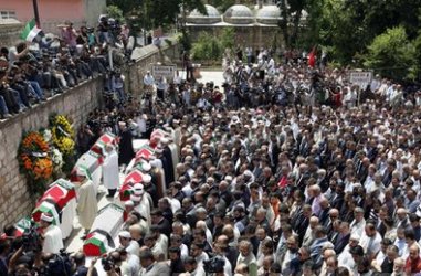 تجمع عشرات الآلاف،اليوم الخميس في اسطنبول للصلاة على أرواح ضحايا الهجوم الإسرائيلي على "أسطول الحرية" الذي كان ينقل مساعدات انسانية إلى قطاع غزة، وهم يرددون شعارات الدعم لفلسطين والإدانة لإسرائيل.