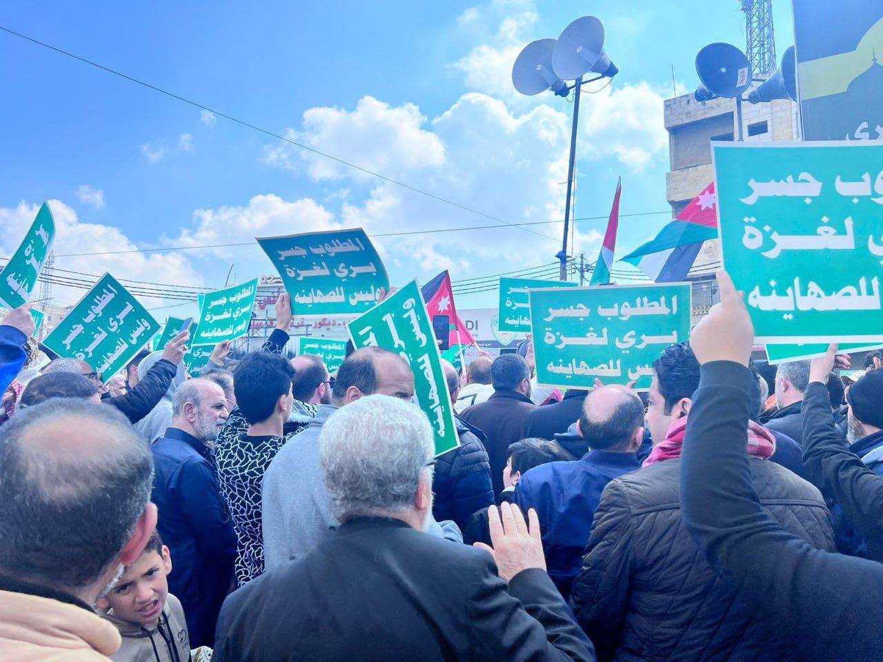 وأكد الأمين لحزب جبهة العمل الإسلامي، مراد العضايلة بأن الأردنيين الذين خرجوا اليوم في هذه الفعاليات يرفضون أي علاقة مع دولة الاحتلال، ويرفضون كذلك إقامة جسر بري في ظل الحرب الشرسة التي يخوضها الجيش الصهيوني.