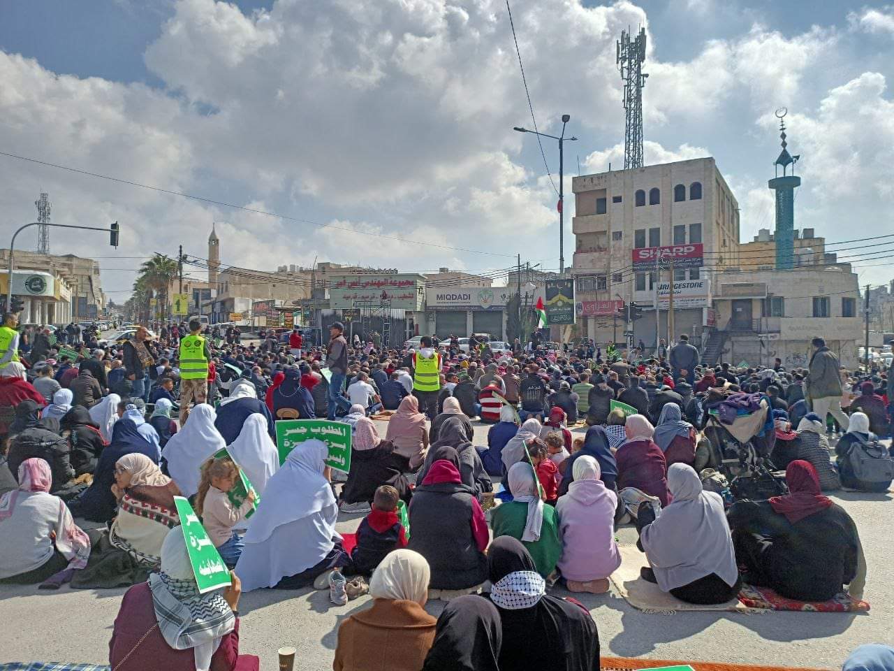 وأغلقت قوات الأمن الطريق المؤدي إلى جسر الشيخ حسين في الأغوار الشمالية، ما اضطر المشاركين للاعتصام قرب مجمّع الأغوار الشمالية الجديد، وحال دون وصول المحتجين إلى الجسر.واستهجن المشاركون السماح بمرور شاحنات الغذاء والبضائع القادمة من دول خليجية عبر الحدود الأردنية باتجاه الكيان الصهيوني، في الوقت الذي تمنع فيه سلطات الاحتلال شاحنات المساعدات الانسانية من الوصول إلى الأهل في قطاع غزة.