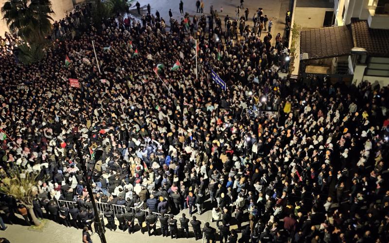يحاصر آلاف الأردنيين مساء كل يوم محيط السفارة الإسرائيلية منذ سبعة أيام وحاول شبان اقتحام الطوق الأمني الذي فرضته قوات الأمن الأردنية إلا أن الشرطة اعتقلت ما يقارب 200 مُحتج.