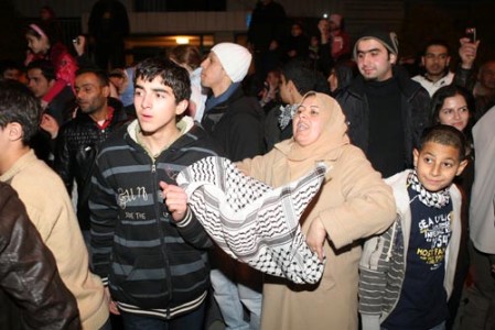 أمين عام حزب جبهة العمل الإسلامي حمزة منصور (الذي أعلن عبر صفحته على الفيس بوك عن توجهه إلى السفارة فور إعلان تنحي مبارك) أعرب عن مباركته للشعوب العربية جمعاء، مؤكدا أن هذا اليوم هو سيد الأيام وخيرالأيام، وهو اليوم الذي انتصرت فيه إرادة الشعب المصري، وهو بداية فجر جديد ومرحلة جديدة تعلو فيها راية الحق، فطوبى لمصر والمصريين.