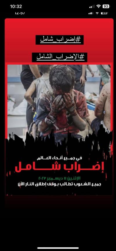 إضراب شامل مرتقب في أنحاء العالم تضامنا مع غزة