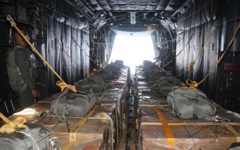 وتؤكد القوات المسلحة أنها مستمرة بإرسال المساعدات عبر جسر جوي لإيصال المساعدات الإنسانية والطبية سواء كانت من خلال طائرات المساعدات من مطار ماركا باتجاه مطار العريش الدولي أو من خلال عمليات الإنزال الجوي على قطاع غزة.