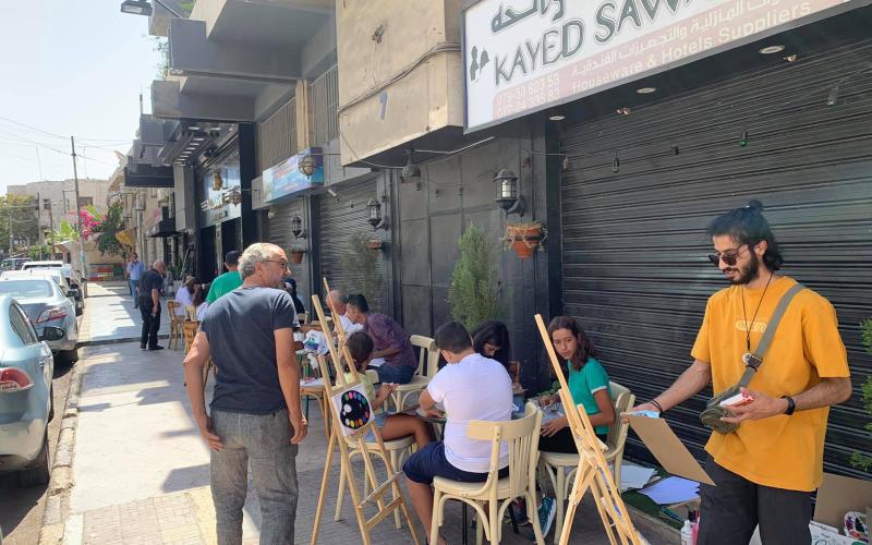 يقوم الفنان بقاعين بنثر ألوانه ولوحات "الكانفس" على طاولات في الشارع، مستقطبا الأطفال ليعبروا عن أفكارهم بالرسم بعد أشهر من التعليم عن بعد والحظر الصحي اللذين فرضتهما جائحة كورونا.