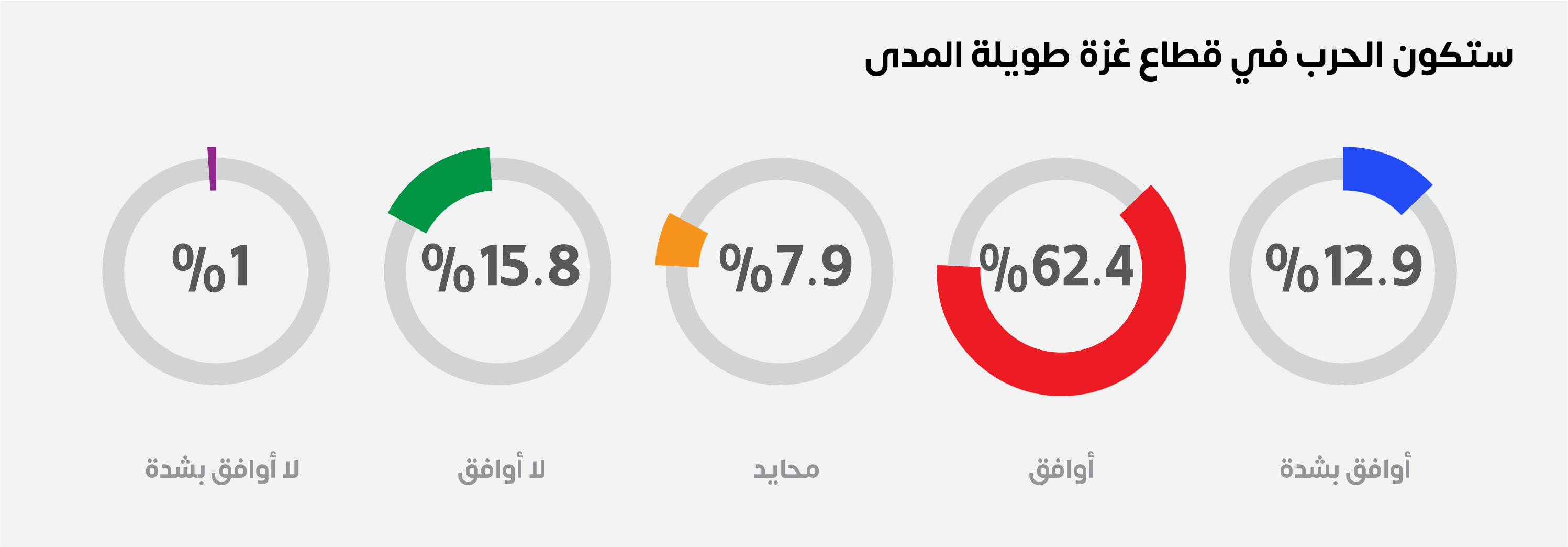 عكست نتائج الاستطلاع أن العينة أقل تفاؤلاً مع تعمق الحرب، إذ تتفق الأغلبية بواقع (75.3%)، أن الحرب على قطاع غزة ستكون طويلة المدى، مقابل (16.8%) يرون عكس ذلك، وفضل (7.9%) الحياد.