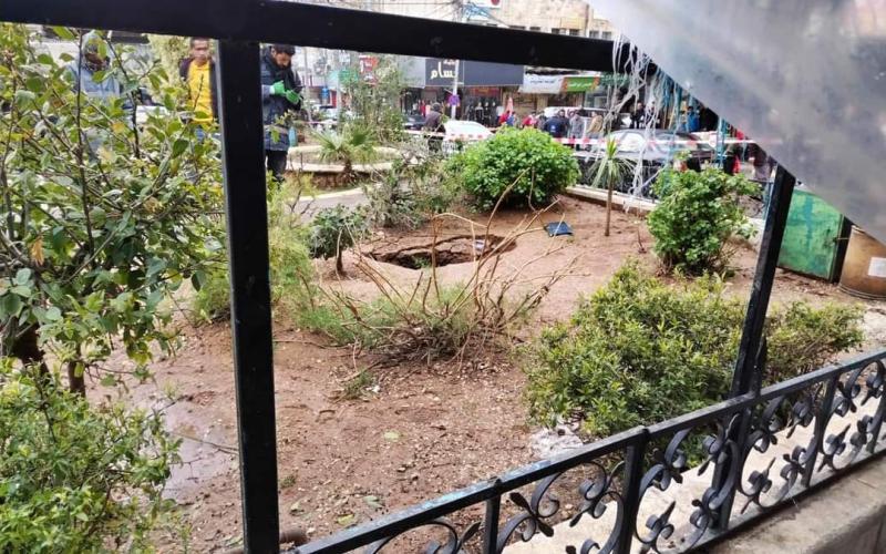 وقال شهود عيان لسرايا إن الهبوط تسبب بفجوة وسط الدوار فيما منعت الأجهزة الأمنية المواطنين من الاقتراب.