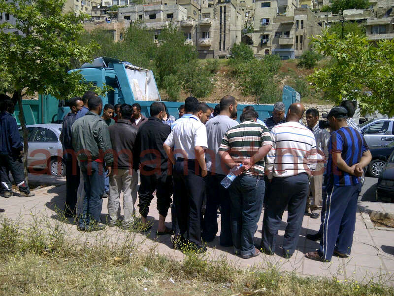أعتصم أصحاب القلابات والآليات الثقيلة صباح الأحد أمام أمانة عماّن الكبرى للمطالبة بإلغاء رخصة المهنة وتأمين مكبات لطرح الانقاض.