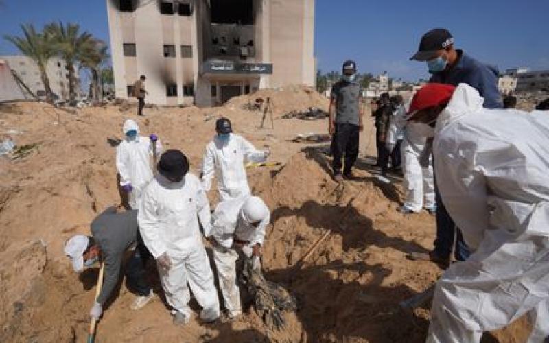 أدانت وزارة الخارجية وشؤون المغتربين استمرار جرائم الحرب البشعة التي ترتكبها قوات الاحتلال الإسرائيلي في قطاع غزة وآخرها اكتشاف مقابر جماعية في باحة مجمع ناصر الطبي في مدينة خان يونس جنوبي قطاع غزة.