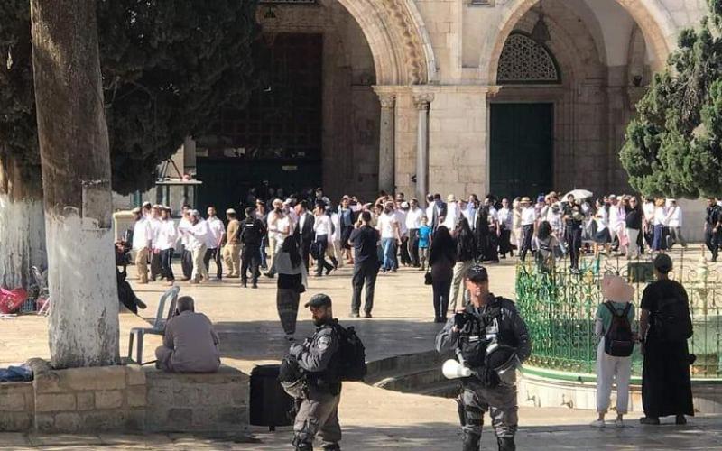 ولازال المسجد المبارك يشهد توترا كبيرا بفعل تدنيسه من قوات الاحتلال وعصابات المستوطنين والاعتداء على المصلين، وسط محاولات من الاحتلال لإخراج المعتكفين من المسجد بالقوة.