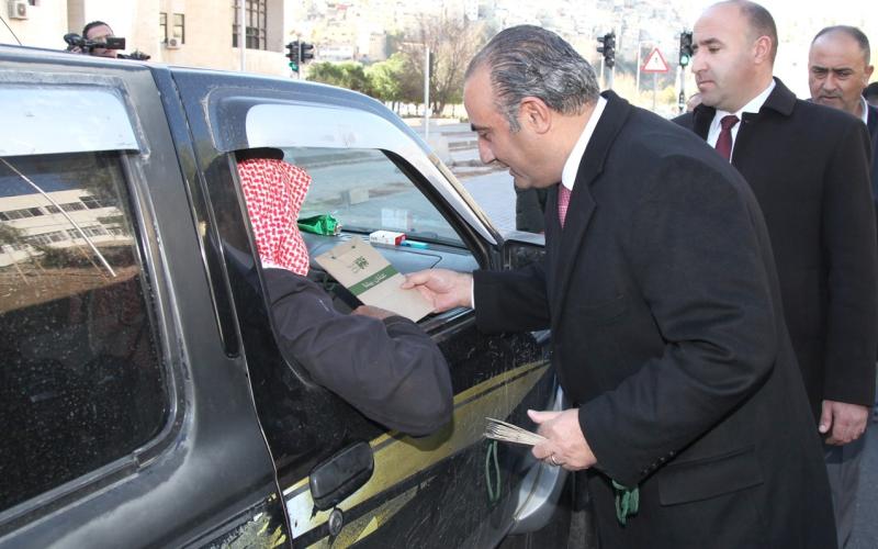 وشارك في توزيع الاكياس نائب أمين عمان الدكتور مخلد المناصير ومدراء الدوائر المعنية الى جانب عمال الوطن ، وتشمل عملية التوزيع وسائط النقل في الشوارع الرئيسية ، وعند التقاطعات المرورية والاشارت الضوئية .