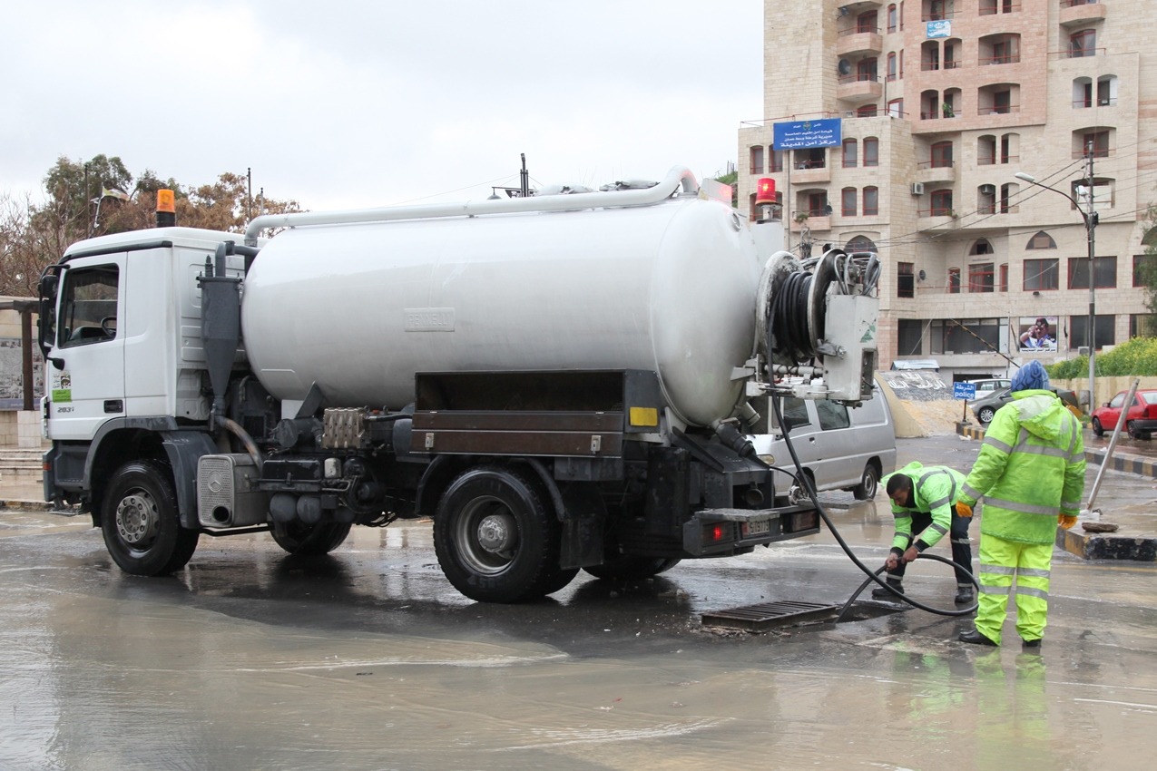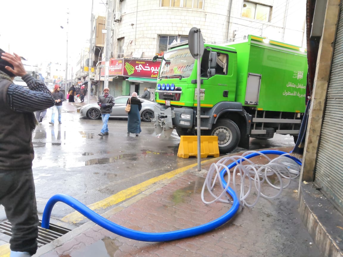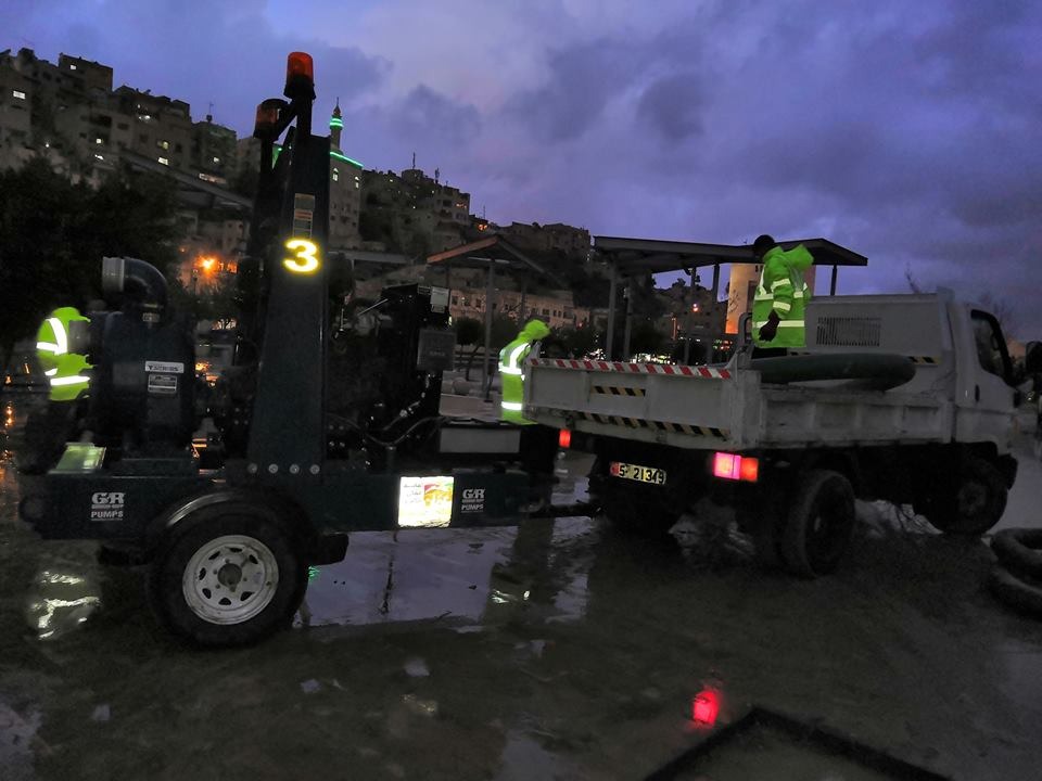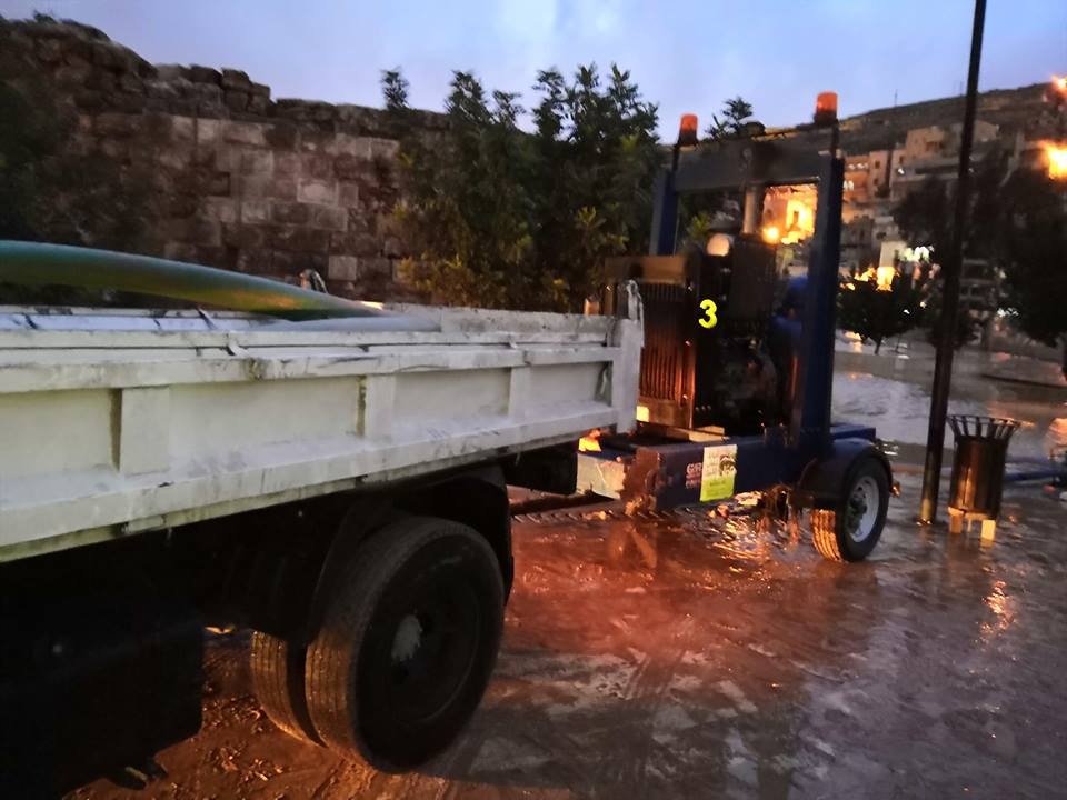 كما تواصل أجهزة الأمانة من خلال ماتورات الشفط الضخمة بسحب المياه من موقعي المدرج الروماني والساحة الهاشمية .