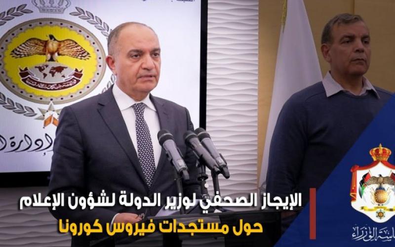 قال وزير الدولة لشؤون الإعلام أمجد عودة العضايلة إن الإيجاز الإعلامي اليومي حول مستجدات كورونا سيكون اليوم، الجمعة 24 نيسان، بصيغة موجز ينشر نصّاً كبيان صادر عن رئاسة الوزراء ووزارة الصحة لجميع وسائل الإعلام قرابة الساعة الثامنة والنصف مساء.