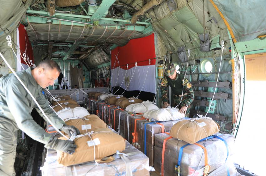 وتؤكد القوات المسلحة أنها مستمرة بإرسال المساعدات الإنسانية والطبية عبر جسر جوي لإيصالها من خلال طائرات المساعدات من مطار ماركا باتجاه مطار العريش الدولي أو من خلال عمليات الإنزال الجوي على قطاع غزة أو قوافل المساعدات البرية.