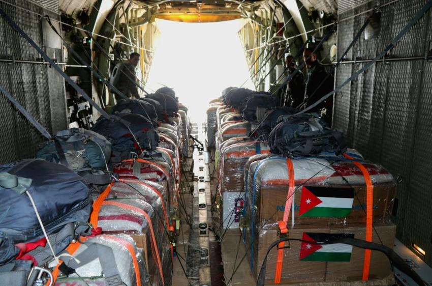 وتؤكد القوات المسلحة الأردنية أنها مستمرة بإرسال المساعدات الإنسانية والطبية عبر جسر جوي لإيصالها من خلال طائرات المساعدات من مطار ماركا باتجاه مطار العريش الدولي أو من خلال عمليات الإنزال الجوي على قطاع غزة أو قوافل المساعدات البرية، لمساعدة الأهل في قطاع غزة على تجاوز الأوضاع الصعبة، وتجسيداً لروح التعاون والتعاضد بين أبناء الشعبين الشقيقين.