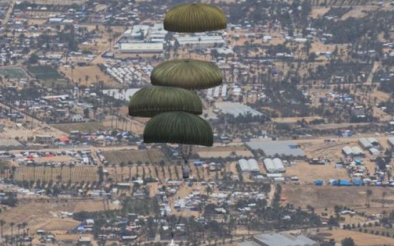 الجيش ينفذ 3 إنزالات جوية لمساعدات على جنوب غزة