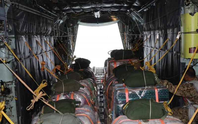 واشتملت الإنزالات الجوية الجديدة على مساعدات إغاثية وإنسانية لمساندة الأهل في قطاع غزة، جراء الحرب الإسرائيلية المستمرة على القطاع.