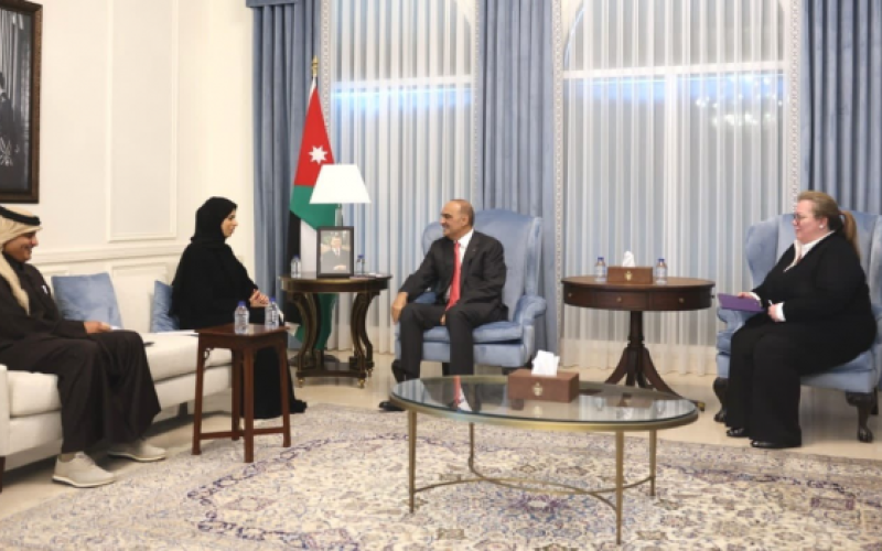 استقبل رئيس الوزراء الدكتور بشر الخصاونة، اليوم الثُّلاثاء في مكتبه في دار رئاسة الوزراء وزيرة الدَّولة للتَّعاون الدَّولي في دولة قطر لولوة بنت راشد الخاطر.