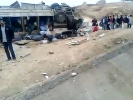 لقي 16 معتمرا فلسطينيا مصرعهم ، واصيب 30 بجروح ورضوض في مختلف انحاء الجسم ، صباح السبت، نتيجة حادث تدهور حافلة معتمرين من الضفة الغربية عائدة من الديار المقدسة ومتوجهة الى جسر الملك حسين، حسب الناطق باسم الدفاع المدني العقيد فريد الشرع.