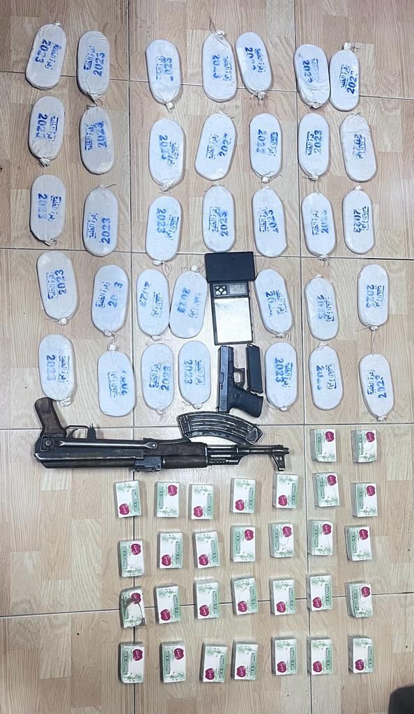 ضبط خلال تلك القضايا كميات كبيرة من المخدرات المتنوعة ومجموعة من الاسلحة النارية .