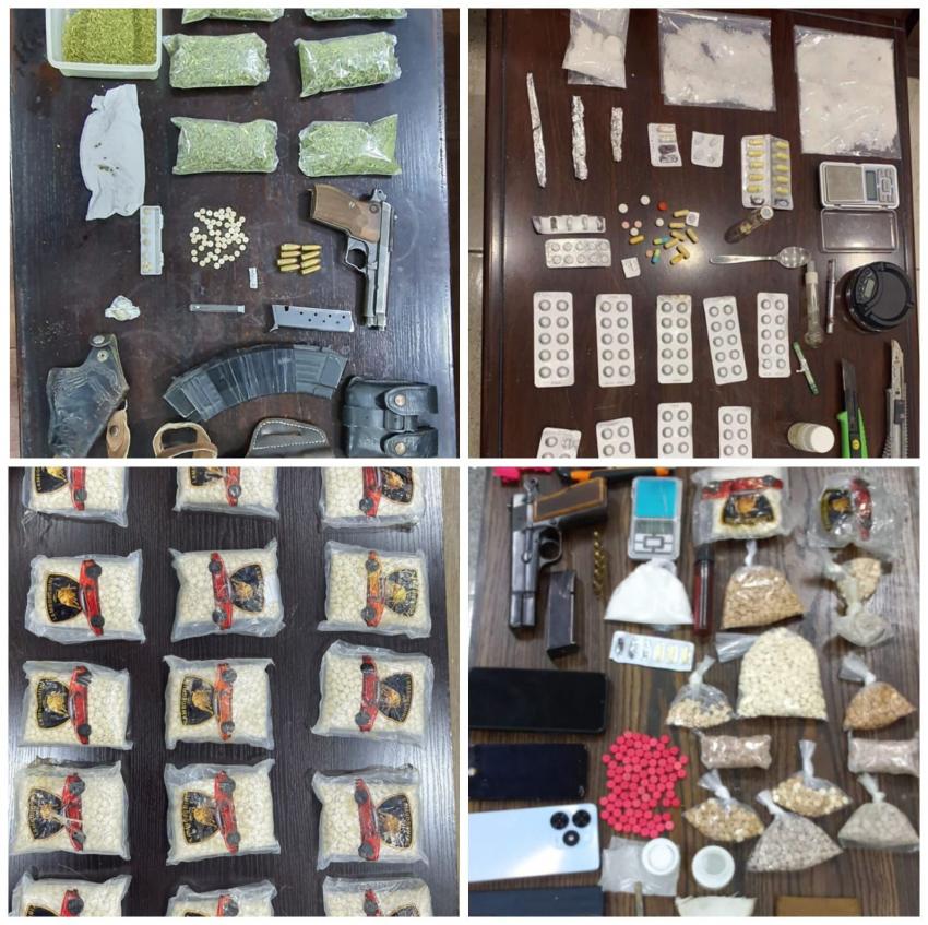 كما وتم في العاصمة التعامل مع قضيتين نوعيتين أُلقي القبض في الأولى على ثلاثة مروجين بعد مداهمة مكان نشاطهم الجرمي داخل أحد المنازل وضُبط بحوزتهم 4500 حبة مخدرة و 100 غم من مادة الكريستال المخدرة وسلاح ناري فيما جرت شرق العاصمة مداهمة أحد الأوكار التي استخدمها مروجون للمخدرات لتخزين وبيع المواد المخدرة، أُلقي القبض داخل المنزل على خمسة مروجين وضُبط بحوزتهم 300 غم من مادة الكريستال المخدرة و100 غم كوكايين وكمية من الحبوب والحشيش المخدرة .