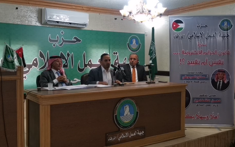 وقال القطامين في ندوة استضافها فرع حزب جبهة العمل الاسلامي بعنوان "قانون الجرائم الالكترونية.. تقنين أم تقييد؟!"، إن القانون وبالاضافة إلى تدميره مشروع تحديث المنظومة السياسية، سيقضي أيضا على الرؤية الاقتصادية، مستشهدا على ذلك بتصريح الخارجية الأمريكية التي قالت إن القانون يقوّض الاصلاح السياسي والاقتصادي.