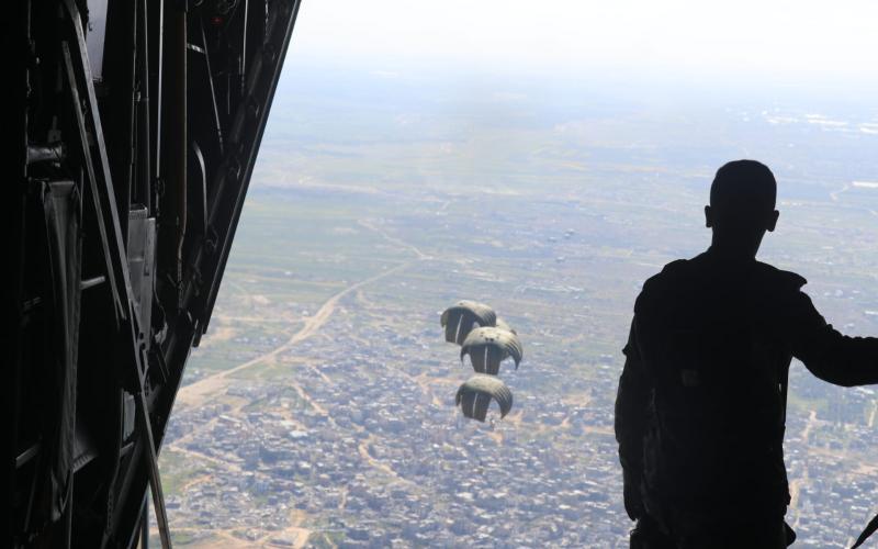 وتؤكد القوات المسلحة أنها مستمرة بإرسال المساعدات عبر جسر جوي لإيصال المساعدات الإنسانية والطبية سواء كانت من خلال طائرات المساعدات من مطار ماركا باتجاه مطار العريش الدولي أو من خلال عمليات الإنزال الجوي على قطاع غزة أو قوافل المساعدات البرية.