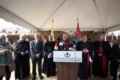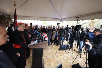 من جهته، أشار الكاردينال بيتسابالا إلى اللقاء الذي جمعه، برفقة رؤساء الكنائس والفعاليات الإسلاميّة في الأردن وفلسطين، وبالأخص من مدينة القدس، قبل أيام من عيد الميلاد المجيد، مع جلالة الملك عبد الله الثاني، حيث كان فرصة لشكر جلالته والعائلة الهاشميّة والأسرة الأردنيّة الواحدة على وقفتها التاريخيّة النبيلة مع أبنائنا وبناتنا الأعزاء في غزة.