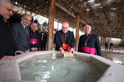 ووجّه الكاردينال بيتسابالا دعوة للحجاج من كل مكان في العالم ليأتوا لزيارة الأردن، مقدمًا الشكر للجهود الكبيرة التي يبذلها مجلس أمناء موقع المعموديّة، ووزارة السياحة، وهيئة تنشيط السياحة، وموقع المعمودية، والكنائس، ولكلّ من يعملون في هذا القطاع السياحي الهام بالنسبة للاقتصاد الأردني، وكذلك لبناء الجسور بين الكنائس المحليّة وكنائس العالم.