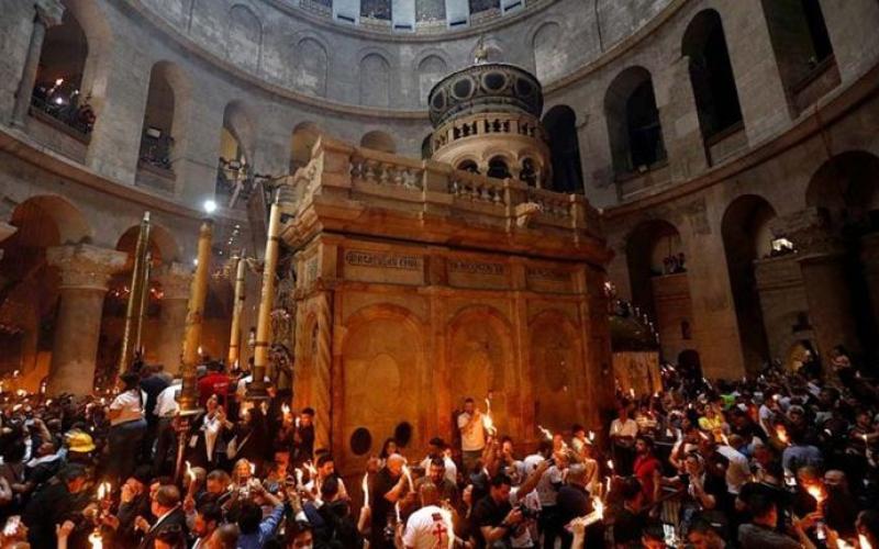 وترأس بطريرك القدس وسائر أعمال فلسطين والأردن للروم الأرثوذكس ثيوفيلوس الثالث، صلاة خاصة في كنيسة القيامة بالقدس المحتلة، بحضور لفيف من المطارنة والكهنة، وعدد من المصلين الذين تمكنوا من الوصول إلى الكنيسة رغم القيود والحواجز العسكرية التي فرضها الاحتلال الإسرائيلي في محيط البلدة القديمة.