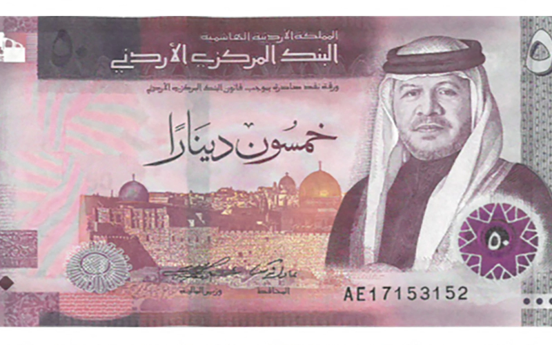 وبدأ طرح فئة 50 دينارا من الإصدار الخامس في التداول والتي يزين وجهها صورة جلالة الملك عبد الله الثاني ابن الحسين، في 5 شباط/فبراير 2023.