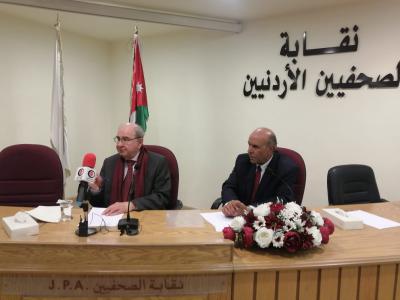 وقال المصري في المحاضرة التي دعت إليها نقابة الصحفيين الأردنيين ، أن الأردن مستهدف كنظام وشعب ووطن من خلال خطط وأطماع مرسومة على الورق من قبل الطامعين وفي مقدمتهم دولة الاحتلال الاسرائيلي ومن يقف خلفها من الداعمين في أمريكا والغرب عموما، وما نراه من دعم معلن وغير معلن من قبل بعض الأشقاء، متسائلا: "خطر التمدد الصهيوني ينتقل إلى الأردن، فماذا نحن فاعلون؟".
