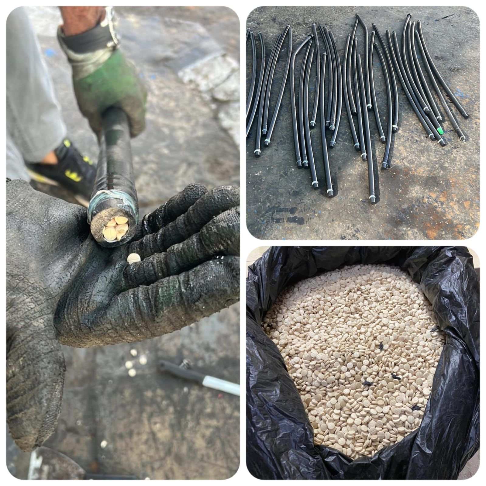 وفي احدى مناطق البادية الشمالية وردت معلومات حول قيام مجهولين باخفاء كميات من المواد المخدرة ، إذ تم التوجه للمكان وبتمشيط المنطقة عثر على 184 كفاً من مادة الحشيش المخدرة و 14 الف حبة مخدرة والتحقيق جارٍ لتحديد هوية المتورطين بالقضية .