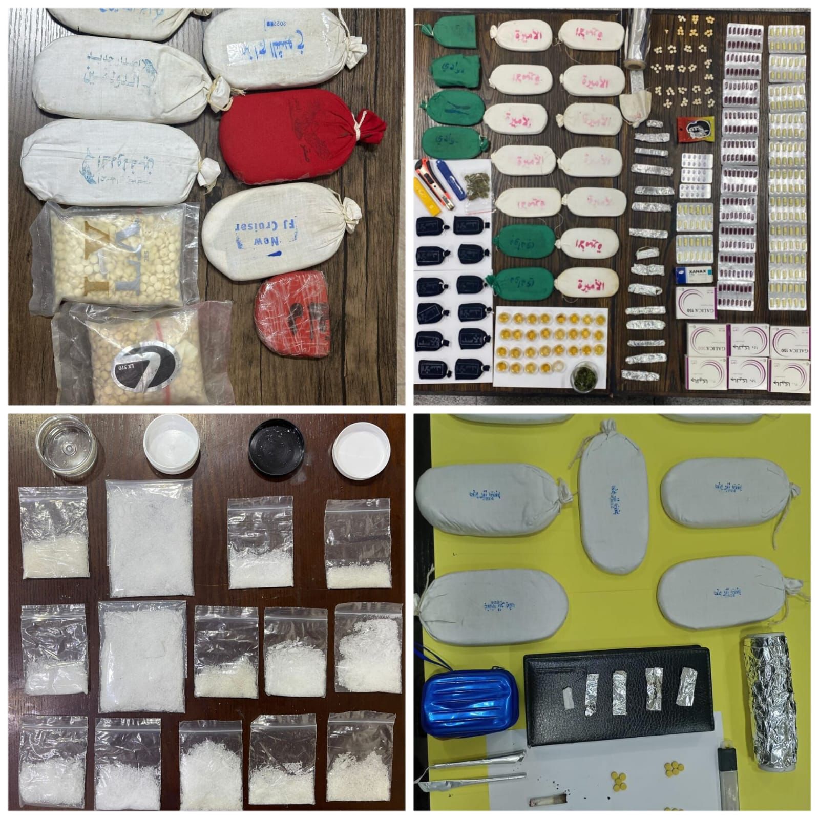وفي قضية أخرى جرت متابعة شخصين من مروجي المخدرات في مناطق جنوب العاصمة وبعد التأكد من حيازتهما للمواد المخدرة جرت مداهمة مركبة يستقلانها وأُلقي القبض عليهما وضبط بحوزتهما 36 كف حشيش و 36 علبة صغيرة تحوي مادة زيت الحشيش وكمية من الحبوب المخدرة وفي القضية الأخيرة في العاصمة، تم ضبط نصف كغم من مادة الكريستال القاتلة بحوزة مروجين اثنين بعد إلقاء القبض عليهما.