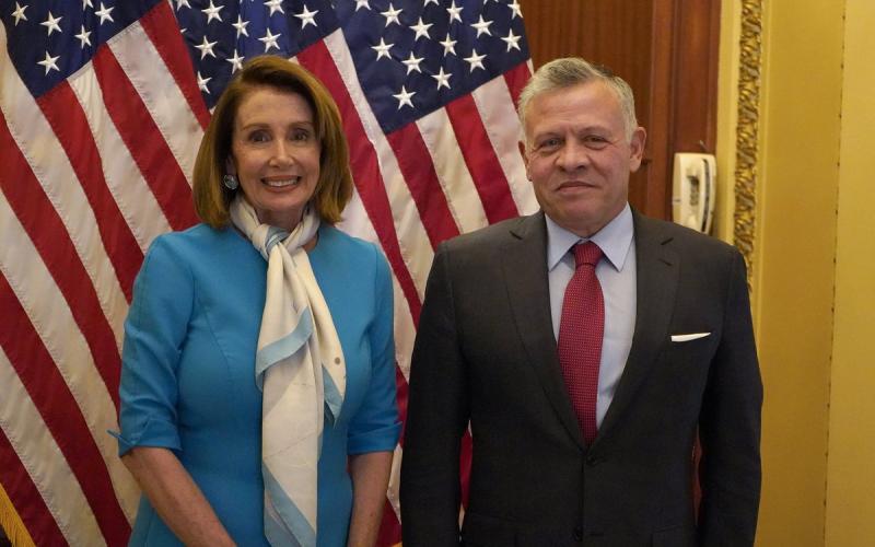 وهو ما اهتم بالوصول إليه جلالة الملك مع نانسي بيلوسي بأرضية العمل التى جمعتهم فى الكابتول وذلك لإيجاد رؤية جديدة للشرق الأوسط يعمل عبرها الجميع من أجل مستقبل المنطقة ومن أجل بناء مناخات طبيعية بين شعوبها لا تقف عند الحدود الظرفية بل تقوم لبناء نماذج عمل استراتيجية تحملها الأجيال القادمة وتصونها وهذا لا يأتي بدعوة للقاء قمه يشارك به الجميع بل يأتي بحل منصف للقضية المركزية للمنطقة على قواعد تنصف صوت العدالة على حساب سوط القوه .