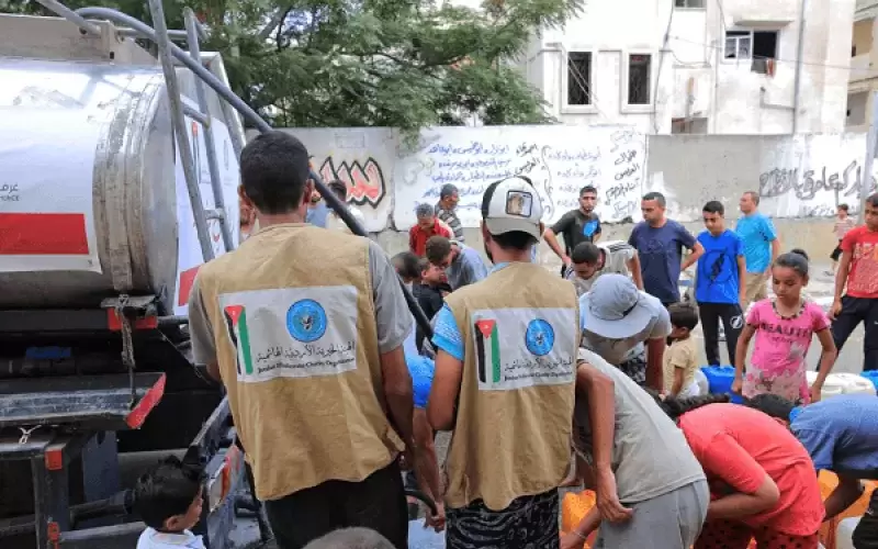 الهيئة الخيرية: توزيع مياه نقية على النازحين بغزة