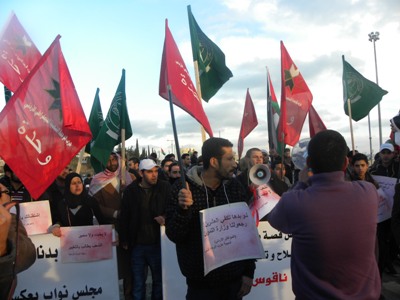 وأطلق المعتصمون شعارات عديدة ، منها " لا معروف ولا سمير الشعب يريد التغيير" , " الشعب يريد اسقاط الحكومة " ، وناس زادوها 20 وناس تقبض بالملايين "