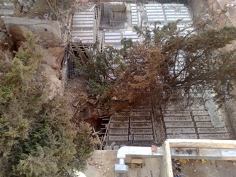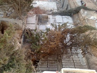 انهار جزء من بناء قيد الإنشاء بالقرب من فندق الجود في مدينة اربد بسبب سقوط إحدى الأشجار الحرجية الموازية للمشروع.