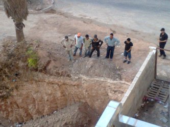 وقال شهود عيان لموقع عمان نت إنه لم تقع إصابات في الأرواح بسبب انهيار أساسات البناء نتيجة قيام إحدى الجرافات بإزالة شجرة معمرة سقطت على المشروع.