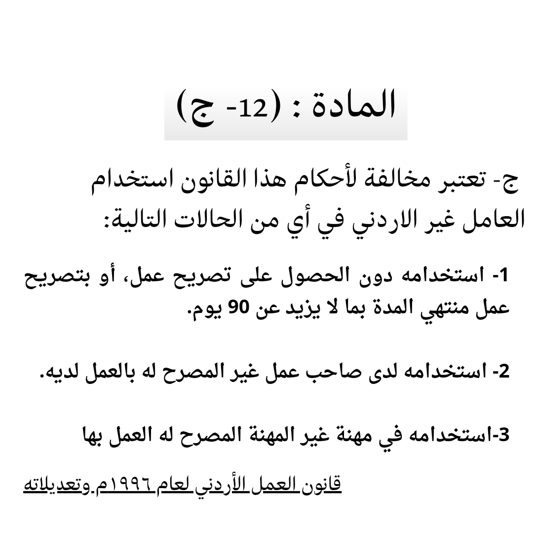 أما حفيظ عمل بقطاع الإنشاء يرى أن تصويب الأوضاع قد يرفع عن كاهله الغرامات المترتبة وهي 200 دينار عن كل سنة بلا تجديد تصريح، يصف معاناته بالقول " الكفيل متحكم فينا لو أعطاني براءة ذمة من أربع سنين ما تراكمت علي الغرامات " ولقد حمل وزارة العمل مسؤولية الوضع المالي والقلقل اليومي الذي يعيشه في الأردن.