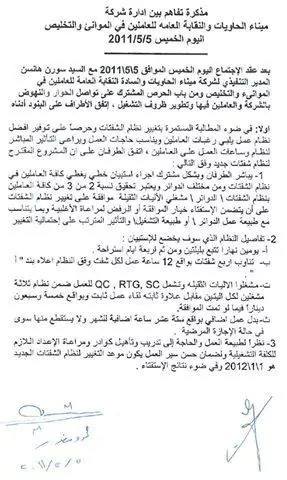 يشار أن العاملين في شركة حاويات العقبة نفذوا عدة اعتصامات للمطالبة بحقوق عمالية أدت لإقالة المدير العام لسلطة العقبة الإقتصادية كامل محادين بعد أن حكمت المحكمة العمالية لصالحهم في الخلاف القائم معه.