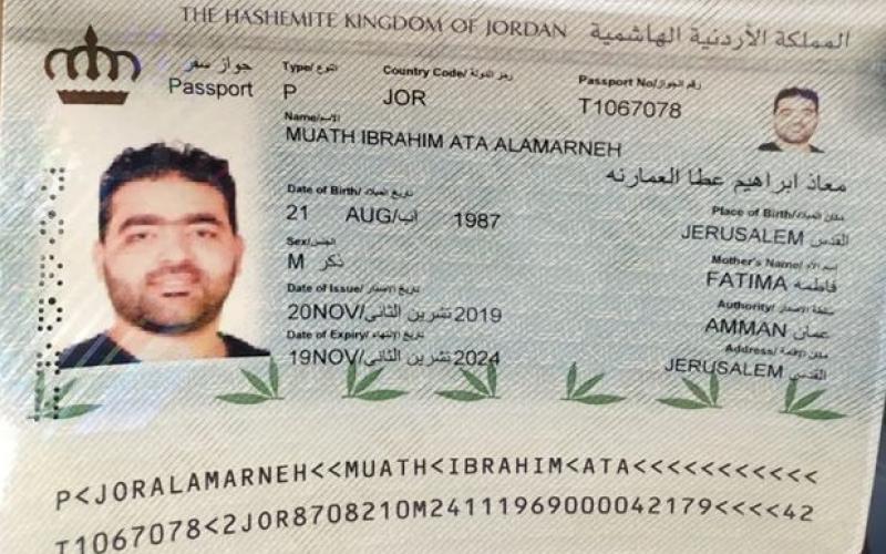 جواز سفر أردني للمصور الصحفي معاذ العمارنة