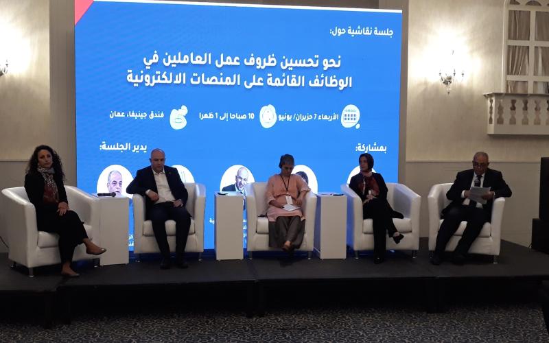 وضمت الجلسة خبراء من فريق "العمل العادل" العالمي وخبراء مؤهلين من الأردن ومنطقة الشرق الأوسط وشمال أفريقيا، لمناقشة التحديات والفرص التي يواجهها قطاع المنصات الإلكترونية في أكثر من 38 دولة حول العالم.