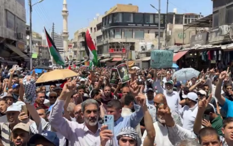 انطلقت مسيرة شعبية حاشدة من أمام المسجد الحسيني، في وسط العاصمة عمان، بعد صلاة الجمعة، بمشاركة شعبية واسعة تعبيرًا عن رفض حرب التجويع والإبادة المتواصلة على قطاع غزة منذ نحو 9 أشهر.