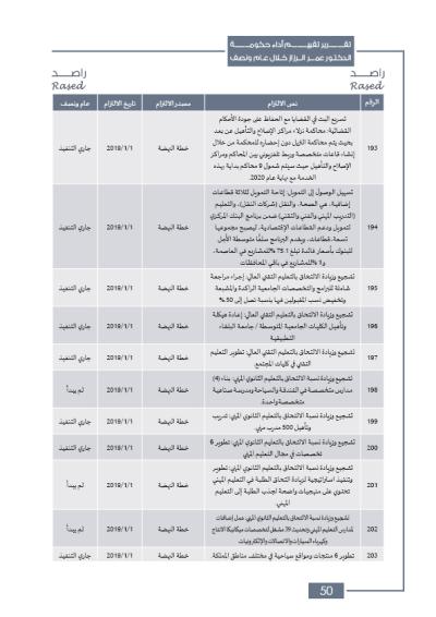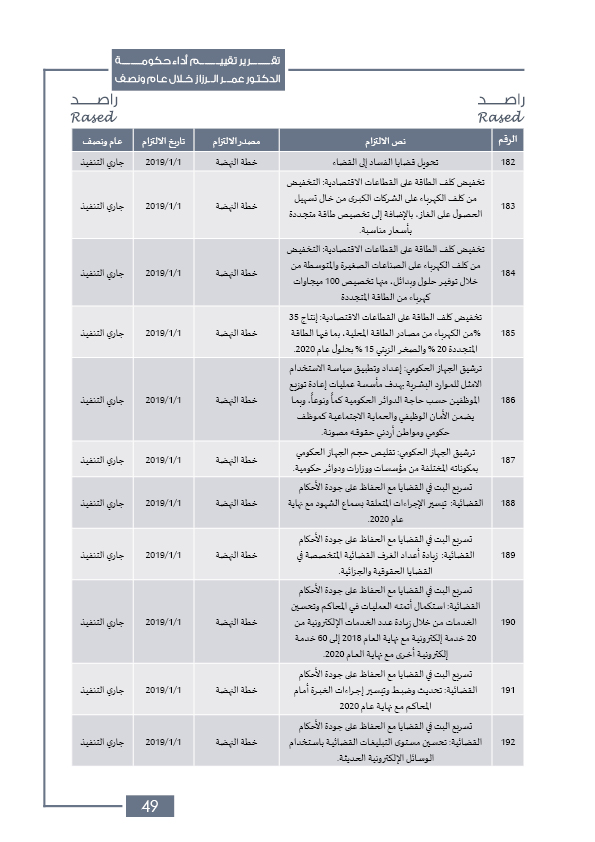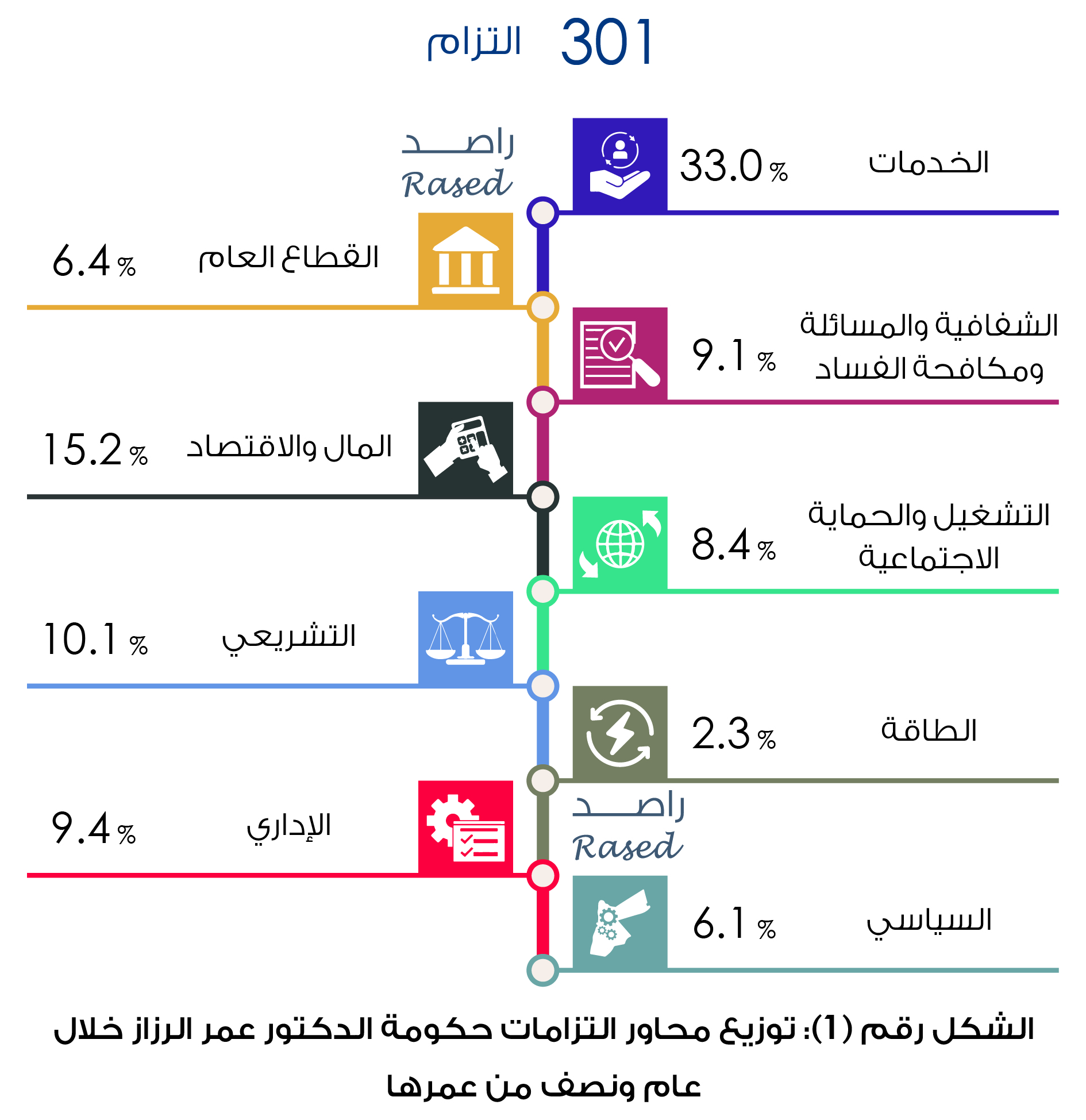 301 التزام التزمت بها حكومة الرزاز خلال عام ونصف اكتمل منها 18% و68% منها جاري العمل عليها