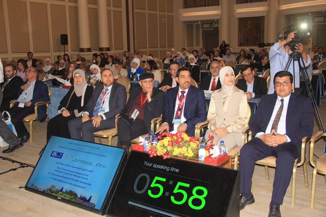 افتتحت أمين عام وزارة الصحة للشؤون الإدارية الدكتورة الهام خريسات، مندوبة عن وزير الصحة د.فراس الهواري، فعاليات مؤتمر جراحة السمنة الاردني الدولي الرابع الذي تعقده جمعية جراحة السمنة الأردنية تحت رعاية وزير الصحة الدكتور فراس الهواري، خلال الفترة من 24-26 الجاري في فندق الرويال.