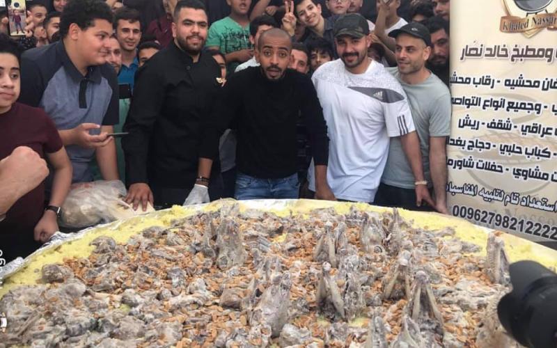 وقال صاحب المطعم إن الحضور فاقوا المتوقع حيث تجاوز عددهم 200 شخص بينما كانت سدر المنسف بقطر 3 متر يكفي حوالي 700 شخص.