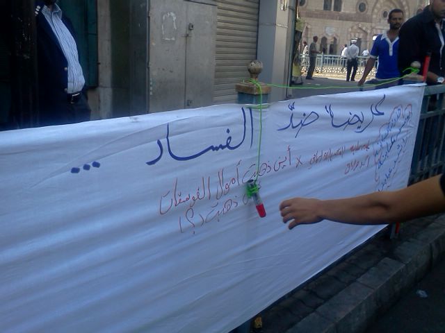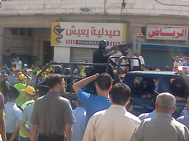 فيما قام منظمو المسيرة بتعليق اليافطات والشعارات والأعلام الأردنية، وتحضير الأجهزة الصوتية.