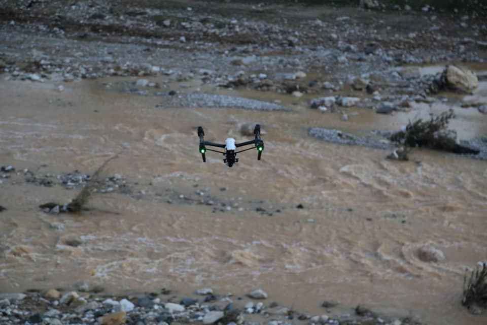 وبين الناطق الإعلامي إن فرق البحث والإنقاذ تستخدم اليوم في عمليات البحث والتفتيش طائرات مسيرة بدون طيار مزودة بكاميرات مرتبطة مع حافلة القيادة والسيطرة وكلاب البحث والإنقاذ وقوارب لعمليات التفتيش في سد الملك طلال .