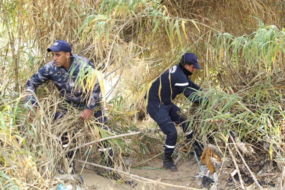 المديريات الميدانية وفريق البحث والإنقاذ الدولي يزيد عددها عن (250) شخص مجهزة بمعدات بحث وإنقاذ متخصصة تعمل على نطاق واسع يمتد من وادي القمر وصولاً إلى سد الملك طلال .