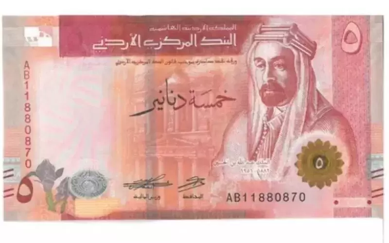 أعلن البنك المركزي الأردني عن بدء طرح فئة الخمسة دنانير/ الإصدار الخامس في التداول، والتي يزين وجهها صورة جلالة المغفور له الملك عبد الله الأول طيب الله ثراه، اعتباراً من اليوم الأربعاء، جنباً إلى جنب مع فئة الخمسة دنانير/ الإصدار الرابع.